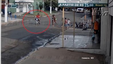 Imagens de uma câmera de segurança de um estabelecimento comercial mostram uma criança de 4 anos sendo atropelada por um motociclista na Avenida 15 de Novembro, na cidade de Rondonópolis (212 km de Cuiabá). O acidente aconteceu na tarde desta quarta-feira (3).