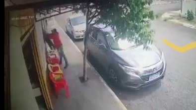 A ação foi rápida e durou poucos segundos. A dupla saiu correndo em seguida. Policiais e perícia estão no local.