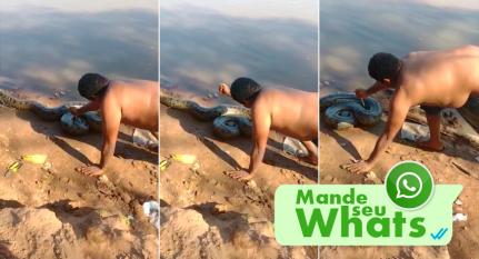 Um vídeo que circula na internet mostra um homem desferindo golpes de faca contra uma cobra na beira do Rio Cuiabá. Denúncia foi encaminhado ao por meio do “mande seu whats” e, segundo informações, o crime ambiental aconteceu na região do Distrito do Sucuri. No vídeo é possível ver que o homem descama um peixe na beira do rio e, após incentivos, desfere golpes em uma cobra que se encontra ao lado.
