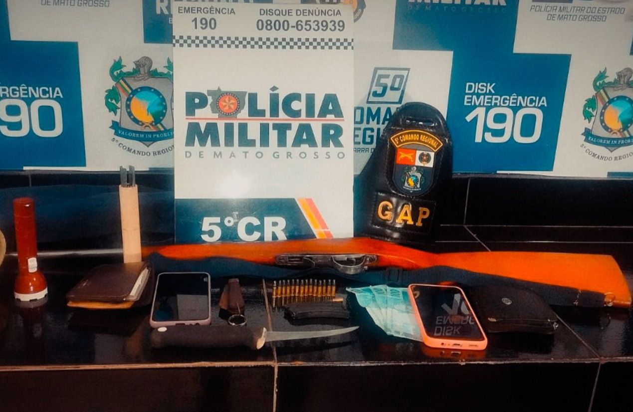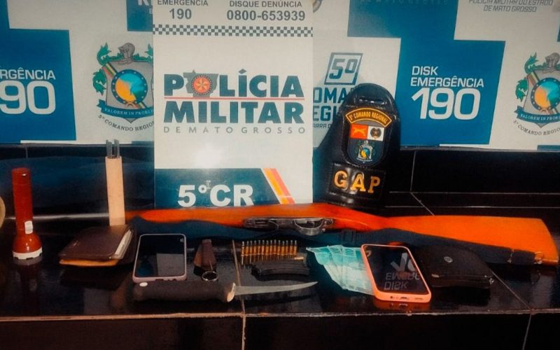 Policiais militares do 2º Batalhão prenderam em flagrante três homens, de 20, 30 e 34 anos, por porte ilegal de arma, na tarde desta quinta-feira (08.06), na zona rural de Barra do Garças. Com os suspeitos, a PM apreendeu uma espingarda e 15 munições.