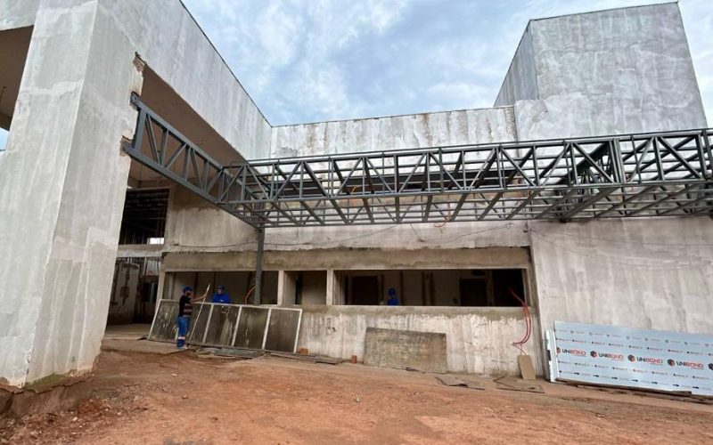 Na obra, já foram realizados o trabalho de regularização de base e terraplanagem, alvenaria de vedação, reboco, revestimento, execução de vigas baldrame, execução de sapatas, execução de pilares, execução de lajes, concretagem de piso armado, laje e pilares, instalação de telhas metálicas da cobertura, montagem de estrutura metálica (marquises e cobertura), pintura de perfis metálicos, instalação de eletrodutos, instalações hidráulicas e sanitárias, e drenagem de águas pluviais, drenos e calhas.