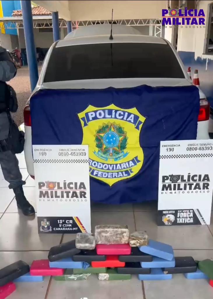 Em buscas no carro, a equipe policial encontrou no painel uma quantidade de 23 tabletes de pasta base de cocaína, com um peso aproximado de 25,30 kg. Em relato aos policiais, o suspeito informou que saiu com a droga da cidade de Chapada dos Guimarães e que seria entregue em Castanhal, no Pará.