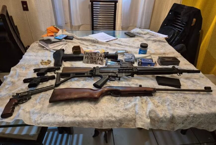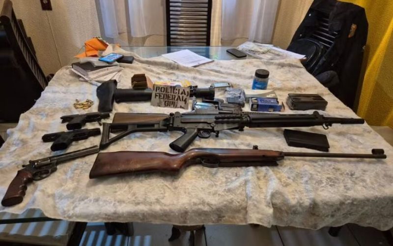 Parte desse armamento foi apreendido em um dos endereços alvo de buscas, em Minas Gerais, conforme a foto que ilustra a matéria.
