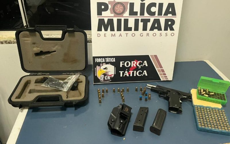 Policiais militares da Força Tática do 3º Comando Regional prenderam um homem, de 27 anos, pelos crimes de tentativa de homicídio e porte ilegal de arma de fogo, na madrugada deste sábado (07.6), em Sinop. Com o suspeito, foi apreendida uma pistola e 27 munições.