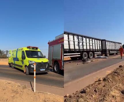 Duas pessoas, ainda não identificadas, morreram e outras duas ficaram feridas em uma batida envolvendo duas motocicletas, um carro e uma carreta nas primeiras horas da manhã desta segunda-feira (25), na BR-163, em Sinop (500 km ao norte de Cuiabá).