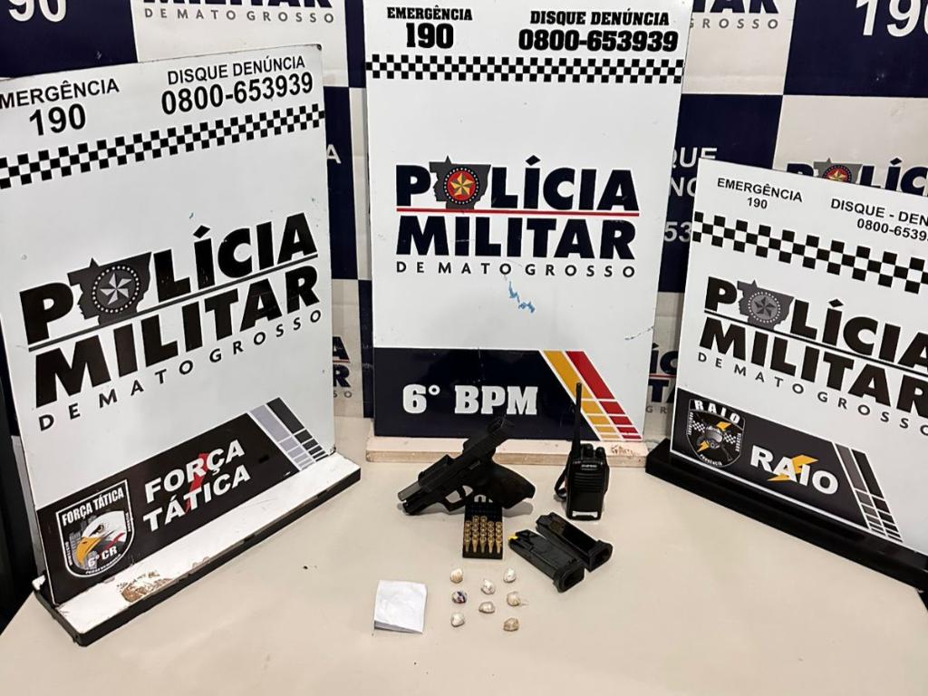 Equipes da Polícia Militar de Cáceres prenderam três homens faccionados, de 18, 19 e 22 anos, por porte ilegal de arma e tráfico de drogas, na madrugada desta sexta-feira (5.9). Com os criminosos, a PM apreendeu ainda uma pistola, munições e porções de pasta base de cocaína.