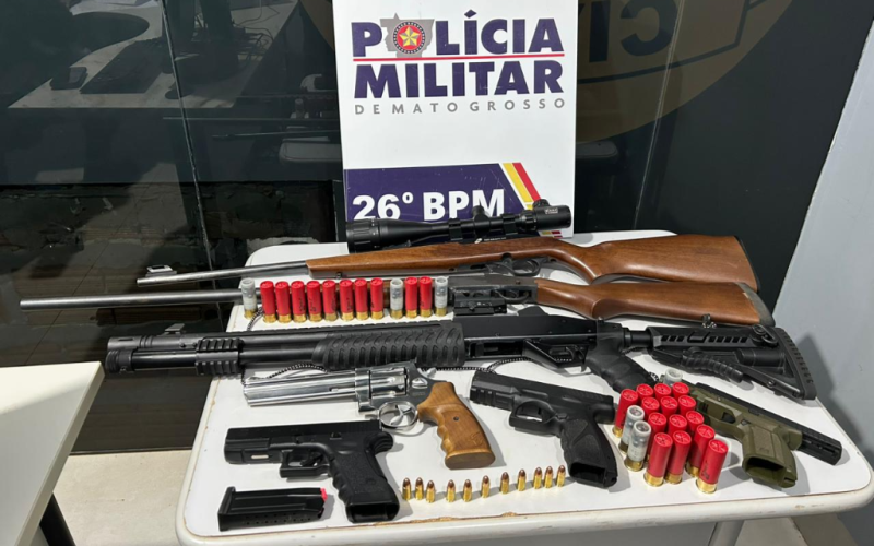 A Polícia Militar de Mato Grosso aumentou em 78% o número de apreensões de armas de fogo, nos primeiros meses de 2026. Entre o mês de janeiro e os primeiros dias de abril deste ano, a PM apreendeu 565 armas de fogo, número maior que as 316 armas retiradas de circulação no mesmo período do ano passado.