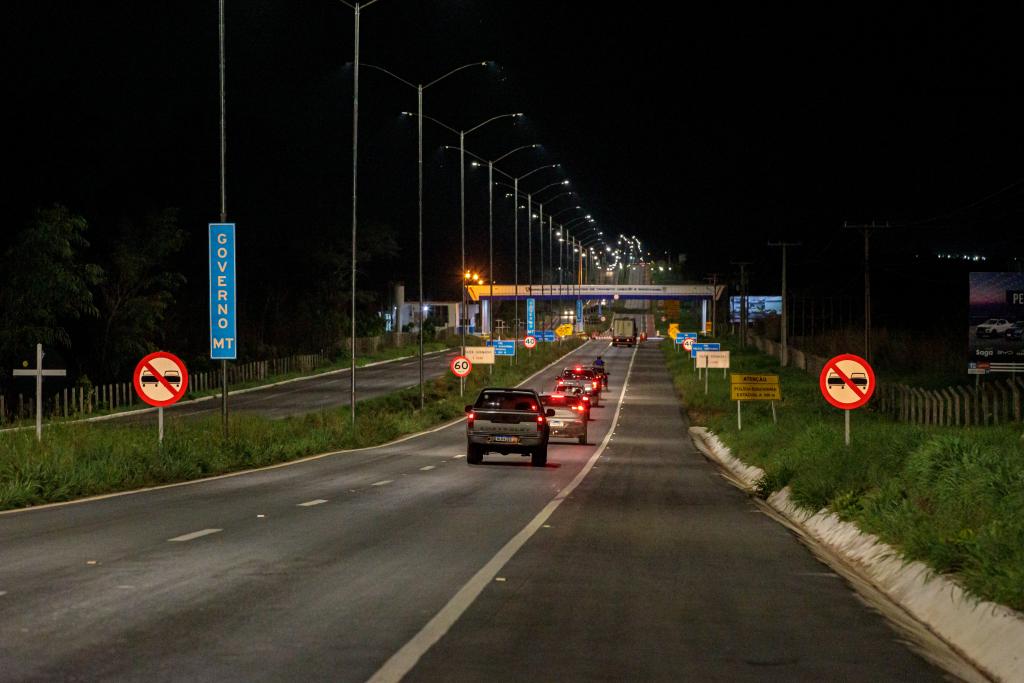 No total, a Secretaria de Estado de Infraestrutura e Logística (Sinfra-MT) está investindo R$ 3,9 milhões na instalação de 601 luminárias de LED em 13 km da rodovia, no trecho entre a rotatória da Fundação Bradesco, até o fim da duplicação, na rotatória para Manso. O trabalho é executado pela empresa Tecnoluz Eletricidade.
