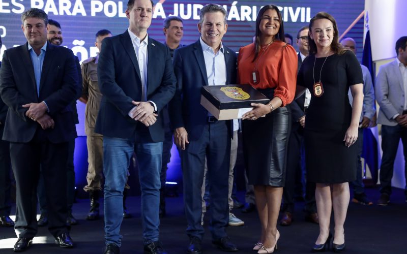 Três policiais civis receberam os kits de uniformes de forma simbólica, representando os quase três mil profissionais que integram a instituição. Ilhane Terezinha Hauschildt, da Central de Flagrantes de Cuiabá, recebeu o uniforme representando os 642 escrivães da instituição. O investigador Byron Pareja Batista, da Gerência de Polinter e Capturas, e a delegada regional de Alta Floresta, Ana Paula Reveles, representou suas respectivas categorias.