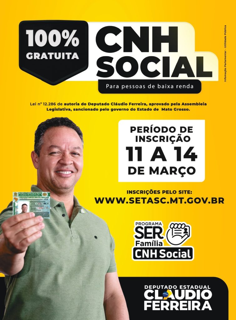 A CNH Social já é uma realidade em Mato Grosso, e para colaborar com o início do programa o deputado estadual Cláudio Ferreira (PL), destinou R$6 milhões em emendas para o projeto que deve atender mais 10 mil pessoas de baixa renda em 2024.