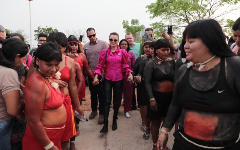 Primeira-dama de MT anuncia projeto de Agricultura Familiar para fortalecer comunidades indígenas e recebe homenagem de mulheres Xavantes