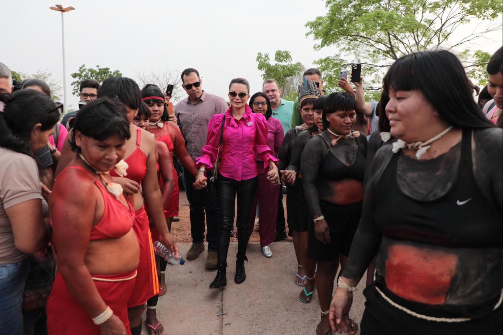 Samira Tsibodowapre, juntamente com um grupo de mulheres indígenas Xavantes, fez uma homenagem em reconhecimento à dedicação e luta da primeira-dama Virginia Mendes.