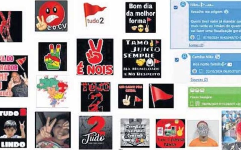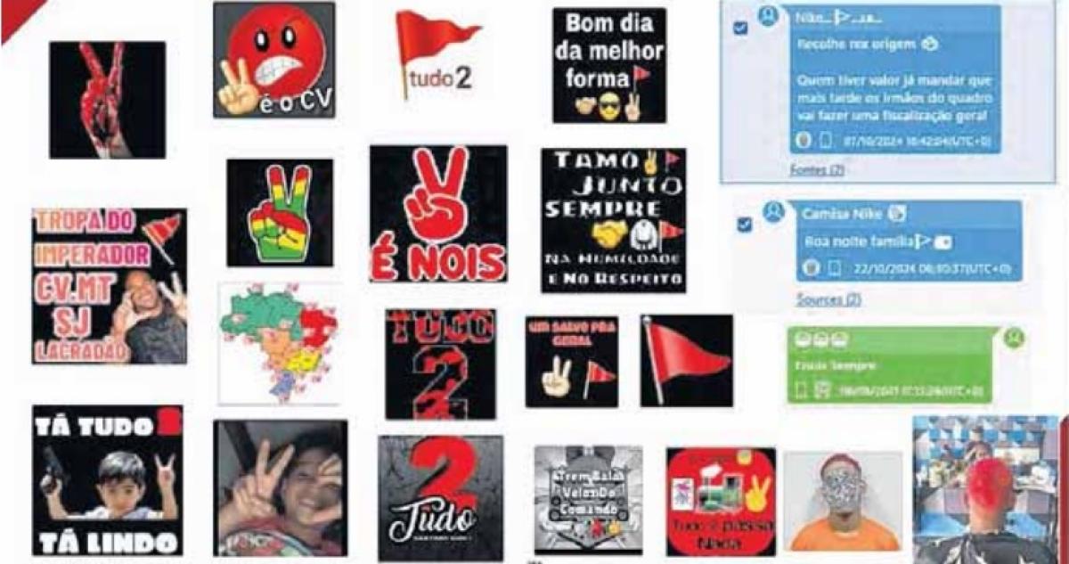 Simples gestos com dois ou três dedos em fotos não sou os únicos símbolos que podem ser fatais ao serem interpretados como saudação ou provocação a facções criminosas. Em território estadual, por exemplo, a quantidade de dedos nas fotos tem relação com dois grandes grupos de facções, tudo com 2 e tudo com 3, expressões usadas pelo crime organizado para descrever as duas principais facções: o Comando Vermelho (CVMT) e o Primeiro Comando da Capital (PCC). Além dos gestos com as mãos, organizações criminosas passaram usar símbolos, marcas ou cores de roupas para demarcar território e criar identidade. As organizações se apropriaram até mesmo de emojis de aplicativos de mensagens, a exemplo de uma tradicional bandeira vermelha, que faz alusão ao CV. O PCC, por sua vez, aderiu ao símbolo Yin-Yang. Quando se fala em tatuagem, o PCC é identificado, por exemplo, pela carpa, o número 1533, estrelas e palhaço. Os membros do CV tatuam o TAZ (demônio da Tasmânia), Coringa, teia de aranha. Nas cores, a facção CV é caracterizada pelo vermelho e o PCC pelo preto.