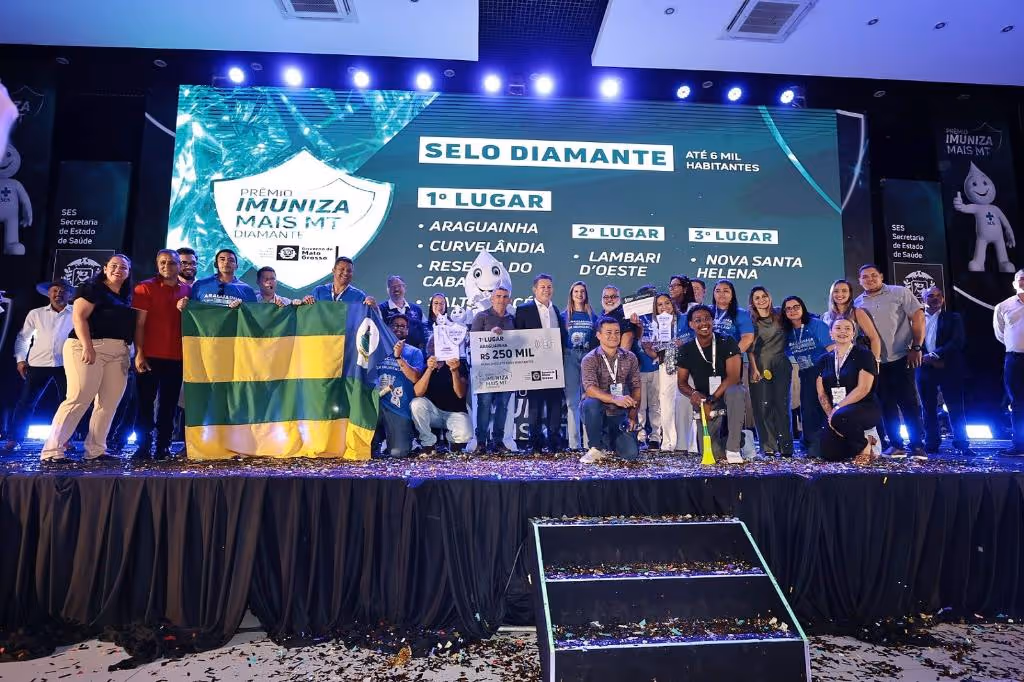 A Secretaria de Estado de Saúde (SES-MT) entregou, na noite desta quarta-feira (4.3), prêmios com valores entre R$ 30 mil e R$ 500 mil aos 42 municípios melhor classificados em 2025 no Programa Imuniza Mais MT. Ao todo, foram investidos R$ 6,28 milhões na 5ª edição da premiação.
